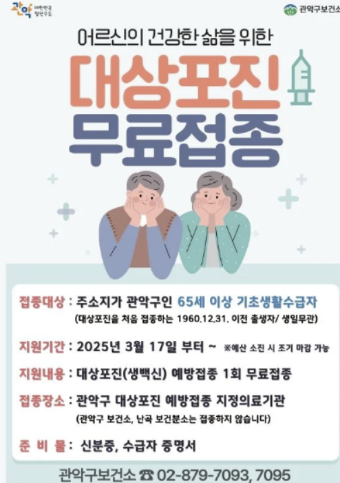 - 일부 지자체에서 65세 이상 대상 무료 접종 지원